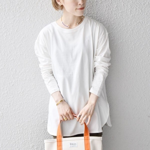 裾や袖を見せるレイヤードスタイルはもちろん、インナーとしても活躍してくれるので、通年楽しんでご着用いただけます。