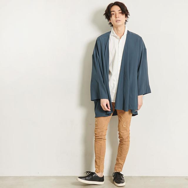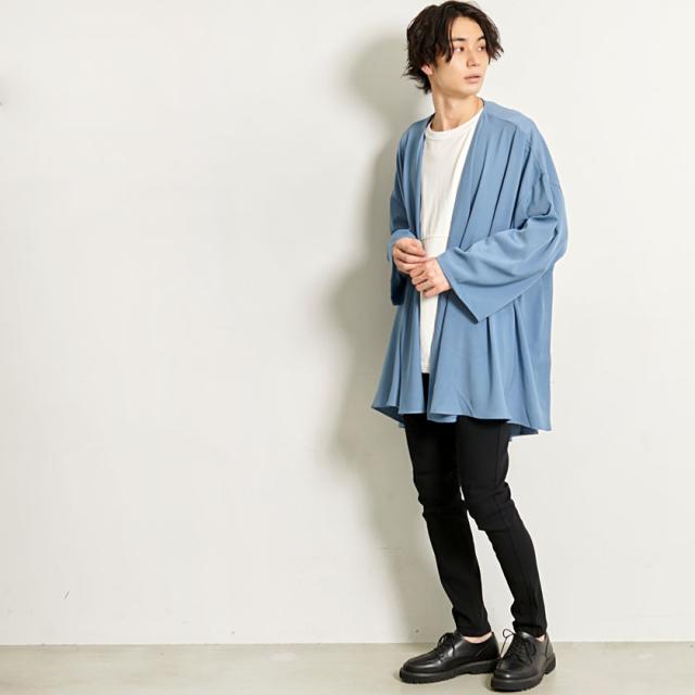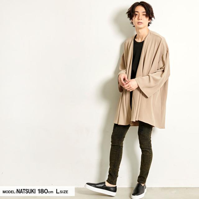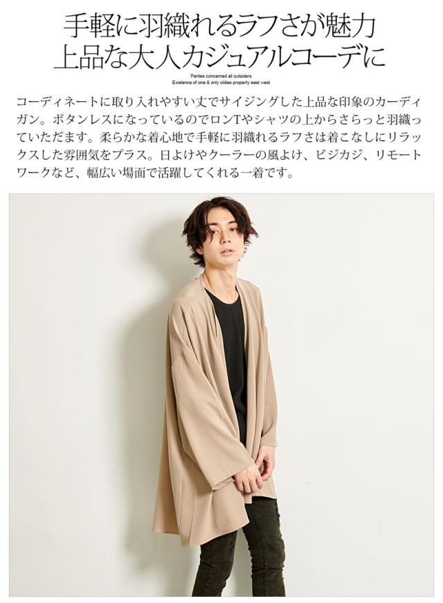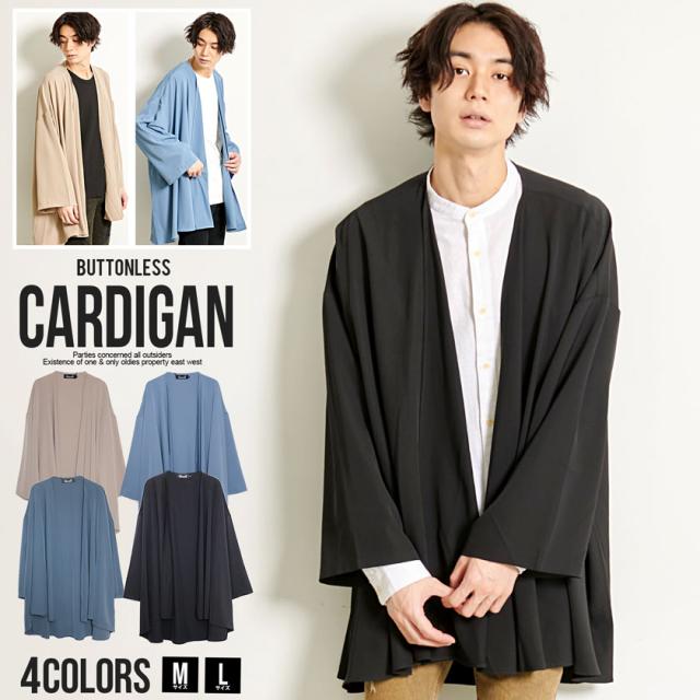 カーディガン メンズ 長袖 トップス 羽織り ポンチョ ボタンレス 薄手 無地 シンプル ゆったり ストレッチ ユニセックス おしゃれ ベージュ ブラック ブルー グレー 黒 M L カジュアル きれいめ 大人 上品 CavariA キャバリア 春 夏 即日発送 [CARE22-04]