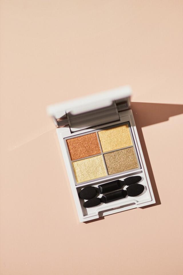 上質なテクスチャーと多様なカラーリングで、似合うを知る&楽しさを引き出す、4色のアイシャドウパレットです。ふんわり溶け込みやすい多様な質感と計算された配色だから重ねてもくすまず、簡単に印象的な目元が完成します。2色だけを使って簡単に。3色使って印象的に。4色全部使えば可能性は無限大。もちろん単色使いもOK!あなたらしさを引き立てる4つのレイヤーで、幾通りもの旬なアイメイクをお楽しみください。 ■サンガーデン:組み合わせ次第で全く違う表情を作れるマルチカラー。4色が絶妙なバランスで目元を演出。 無香料 ※鏡付ケース入り、チップ2本付 サイズ:タテ71×ヨコ57×厚み13mm 【ご使用方法】(1)左上のアイベースをアイホールと下まぶたの目尻側に入れる。 (2)右上のニュアンスカラーをアイホール2/3に入れる。 (3)右下のディープマットカラーは二重幅、目のフレームに沿って上下に自然に入れる。 (4)左下のグロッシーパウダーを目頭上下に指でポンポンとのせる。