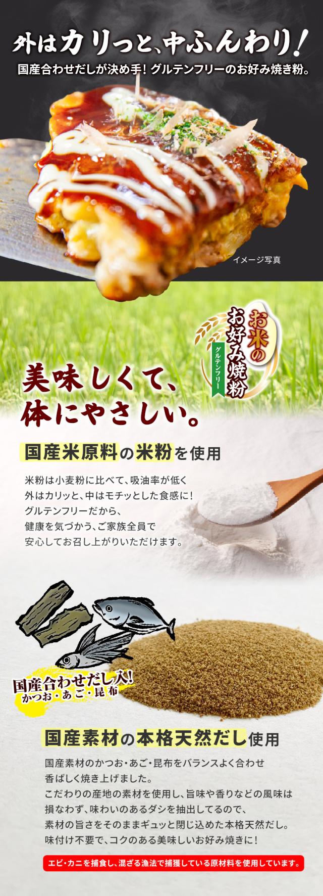 お好み焼き粉 グルテンフリー お米のお好み焼粉 800g 送料無料 国産 合わせだし かつお あご 昆布 業務用