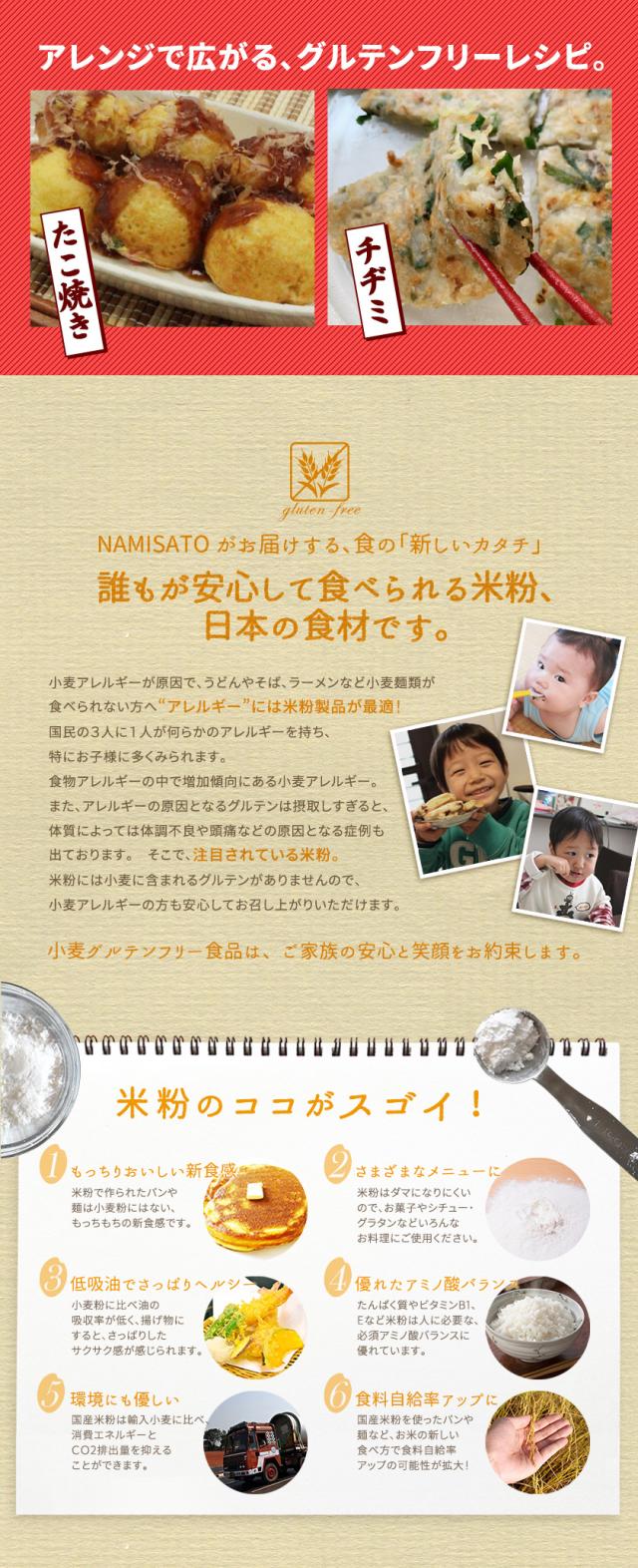 国産米粉を使用したグルテンフリーのお好み焼き粉です。かつお、あご、昆布の国産合わせだしが入っているので簡単にお好み焼きが作れます。米粉入りで外がカリッと仕上がります。