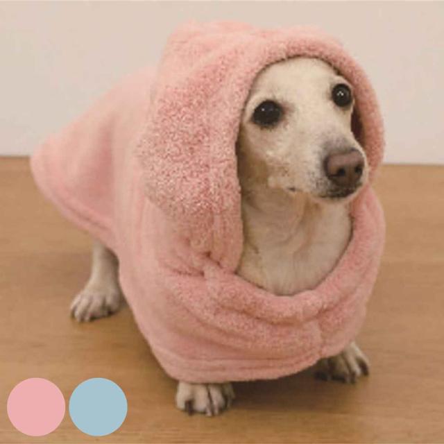 《 LH8252 吸水速乾 ペット服 フード付き キャットウェア ドッグウェア ペットローブ ガウン 体拭き バス用品 かわいい 可愛い カワイイ おしゃれ お洒落 オシャレ 防寒 ピンク ブルー 》