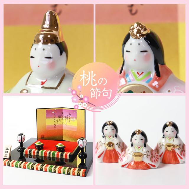 明治以来瀬戸の地で伝承されてきたセトノベルティの技法により、干支置物や招き猫、雛人形、節句人形をはじめ、縁起物や四季折々の季節飾りなど現代の「和飾り」を提案する中外陶園の商品ブランドです。雛人形 コンパクト 染絵弥生飾り雛 薬師窯 ひな人形 雛祭 親王飾り 五人雛 三人官女 段飾り インテリア 縁起物 置物 陶器 飾り台 台座 平飾り ひな祭り 飾り 屏風付き 人気 雛飾り 初節句 かわいい おひなさま お雛様 小さい