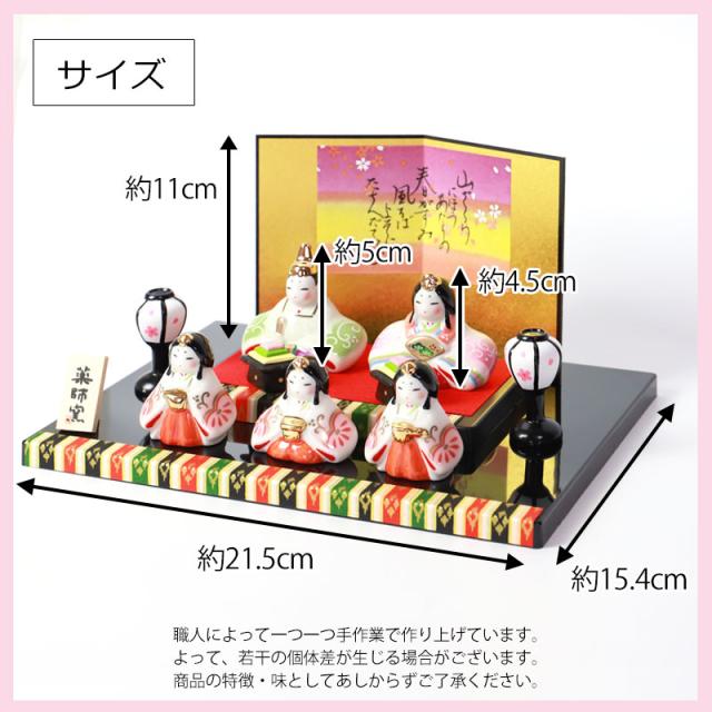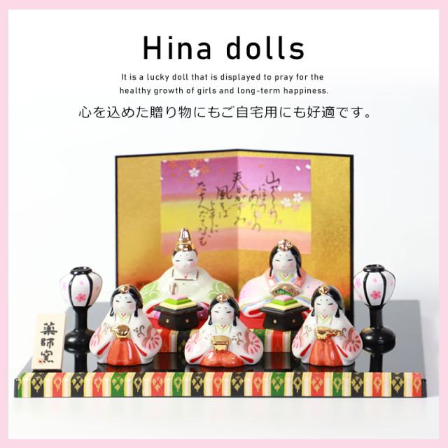 雛人形 コンパクト 染絵弥生飾り雛 薬師窯 ひな人形 雛祭 親王飾り 五人雛 三人官女 段飾り インテリア 縁起物 置物 陶器 飾り台 台座 平飾り ひな祭り 飾り 屏風付き 人気 雛飾り 初節句 かわいい おひなさま お雛様 小さい