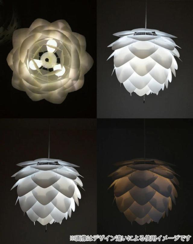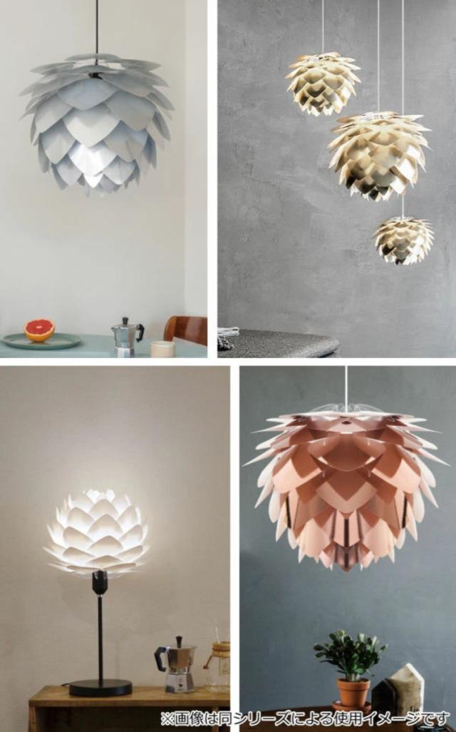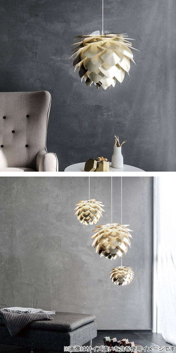 北欧ならではの植物的なモチーフとモダンデザインが融合したお洒落な1灯ペンダントライトです。メタリックカラーが美しく、幾重にも重なった三角の羽が優しく幻想的なあかりを灯します。蓮の花や松ぼっくりに見えるデザインが電気をつけていない時でもお部屋のアクセントになります。コードの色はお部屋のインテリアに合わせて、ホワイトとブラックの2色からお選びいただけます。