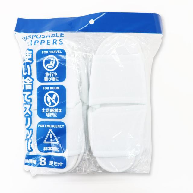 丈夫で安心!使い捨てトラベルスリッパ8足入り