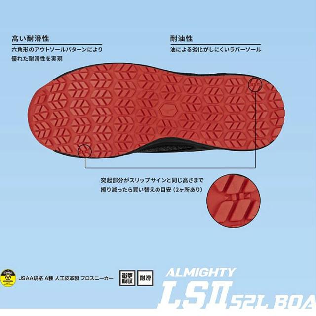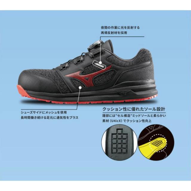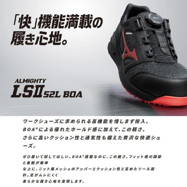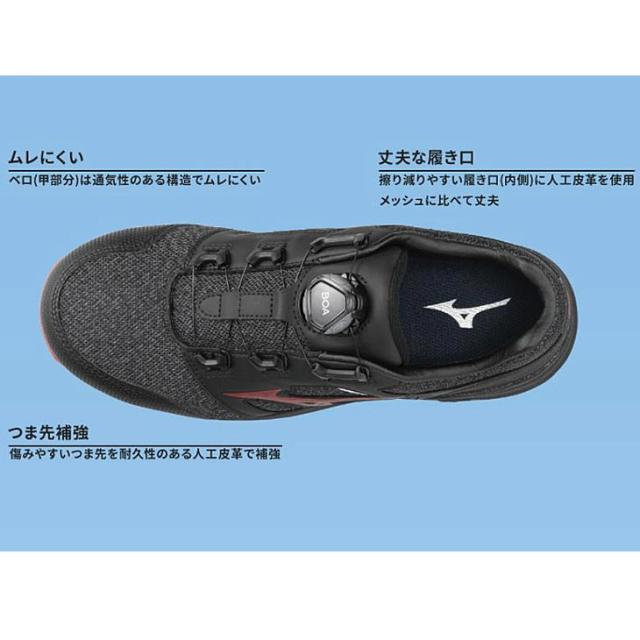 ミズノ 作業靴 くつ クツ メンズ 3E相当 ワーキングシューズ 普通作業用 mizuno オールマイティLS 2 52L BOA ローカット 衝撃吸収 耐滑 軽量 男性用 仕事用 JSAA A種 プロテクティブスニーカー/F1GA2202