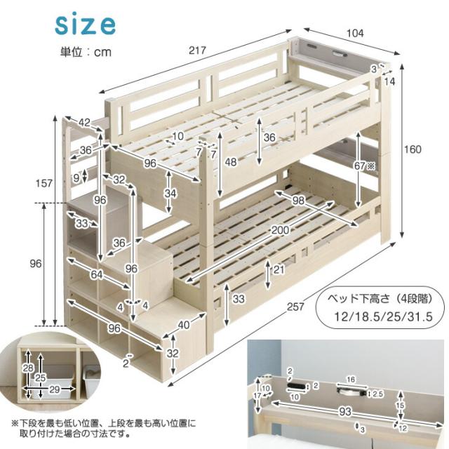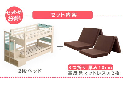 【正午〜P5%還元】 二段ベッド 高反発 マットレス2枚付 高反発マットレス 現役ママが考えた 2段ベッド 階段ラック付 木製 マットレス マットレス付 ハイタイプ 分離 おしゃれ 子供 階段 新入学 【超大型】【後払/時間指定NG】