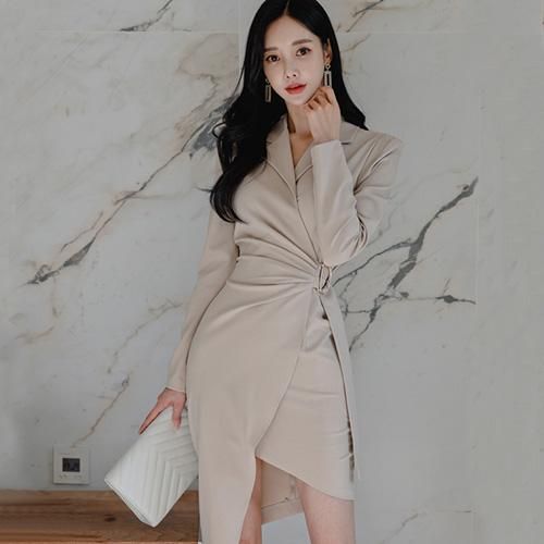 アシメデザインのラップスカートが新鮮なワンピース(キャバドレス・CABARETDRESS)。