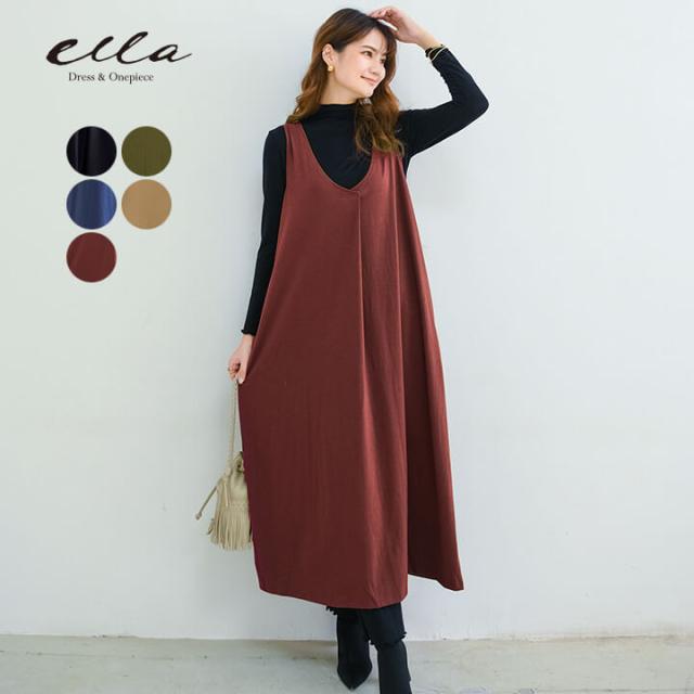 ジャンパースカート ジャンスカ Vネック 前後Vネック ノースリーブ 無地 カットソー生地 レイヤード 重ね着 おうちで洗える 秋冬 オールシーズン 無地 カットソーレイヤード 重ね着 ニュアンス M L LL 体型カバー 大きいサイズ