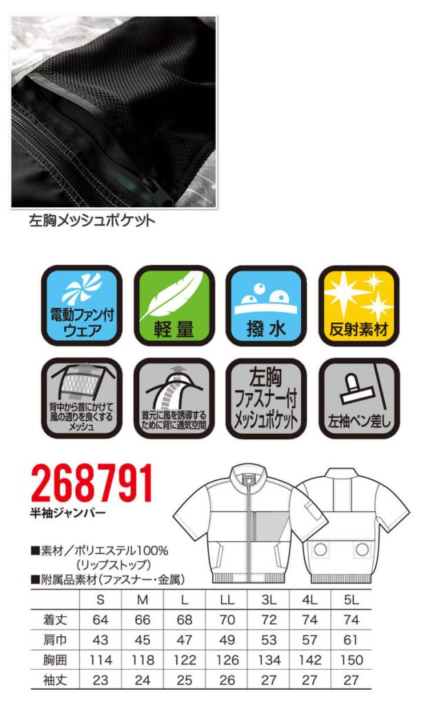 クロダルマ エアセンサー1 半袖ジャンパー(ファンなし) 268791