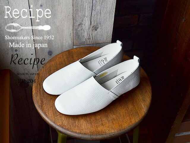 【返品交換送料無料】Recipe レシピ RP-204 Lカットスリッポン WHT ホワイト 靴 レディース シューズ 軽くて柔らかい 日本製