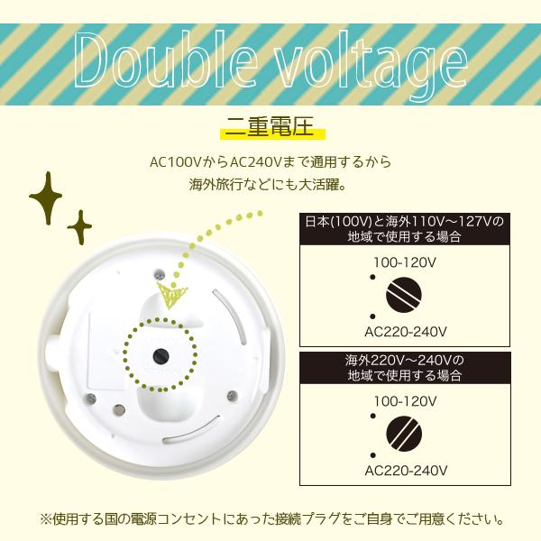 AC100VからAC240Vまで適用するから海外旅行などにも大活躍。