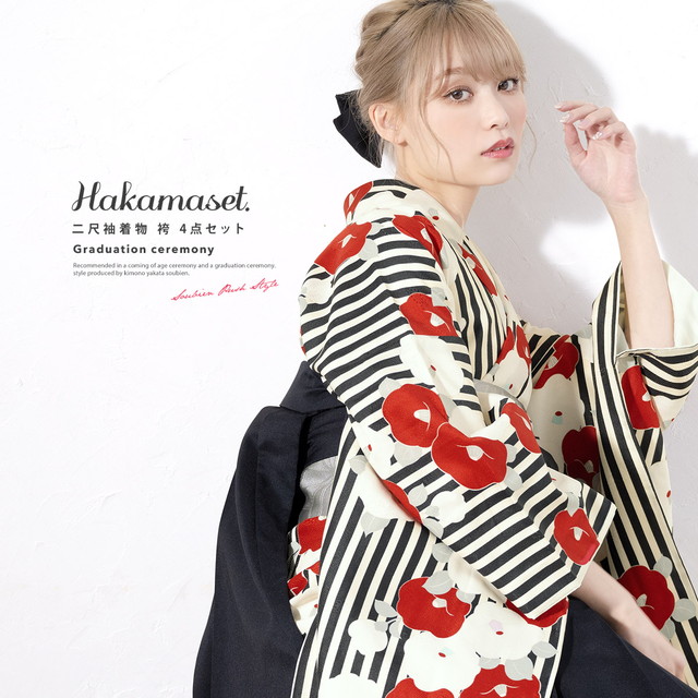 卒業式 袴セット 購入 レディース 大学卒業式 小学生卒業式 販売 ボヌールセゾン ストライプ 椿 黒 赤 白 ショート丈 送料無料