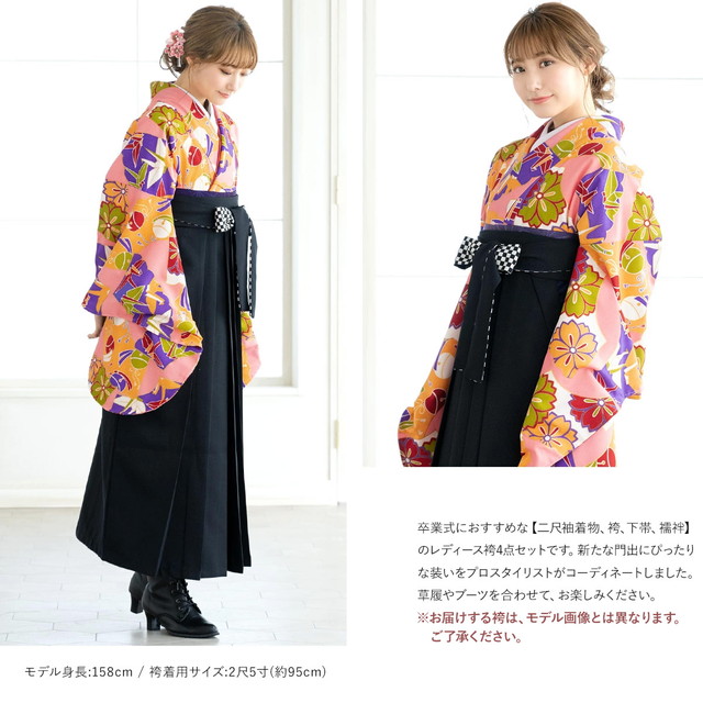 「九重」の華やかな二尺袖着物をコーディネートした袴セットです。