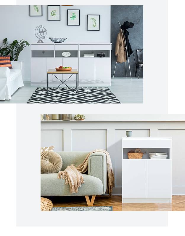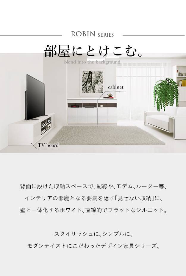 ファックス台 電話台 キャビネット プリンター台 配線収納付きリビングキャビネット ロビンキャビネット 幅60cm ホワイト 白 木製
