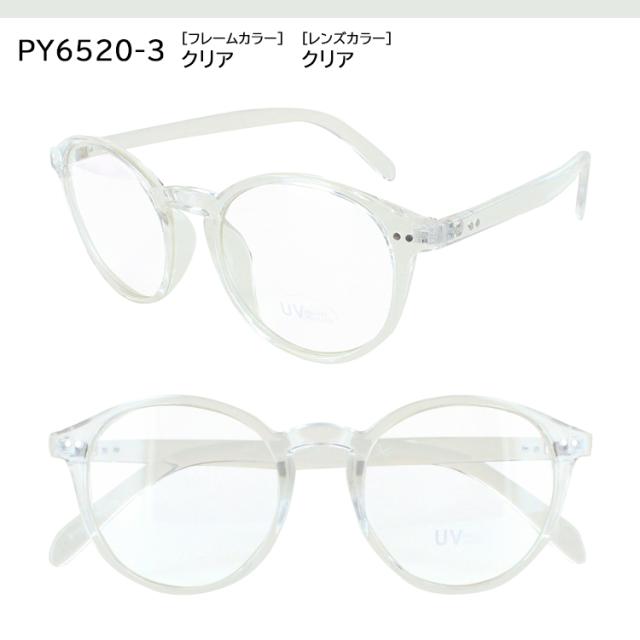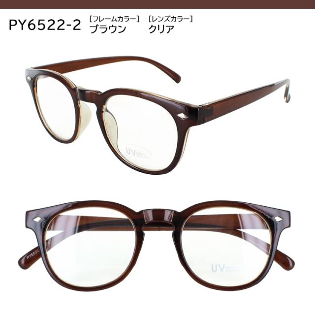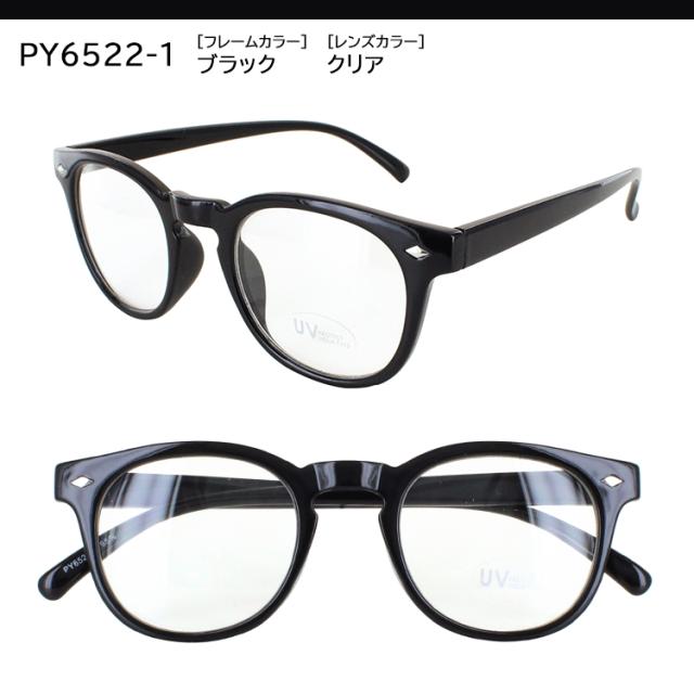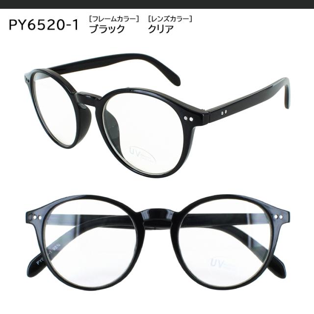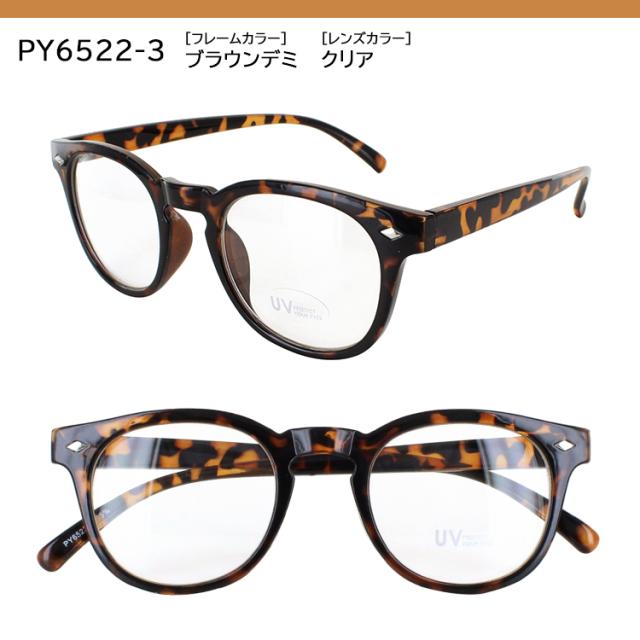 伊達メガネ UVカット メガネ メンズ レディース だてメガネ おしゃれ 伊達めがね ダテ かわいい PY6520 PY6522 ボストン ボスリントン 黒縁 ブラック ブラウン デミ クリア セルフレーム クリアレンズ 度なし 紫外線99%カット 男女兼用 ユニセックス