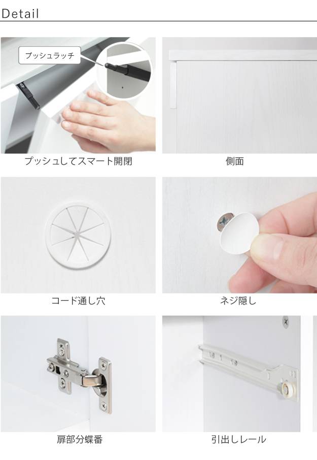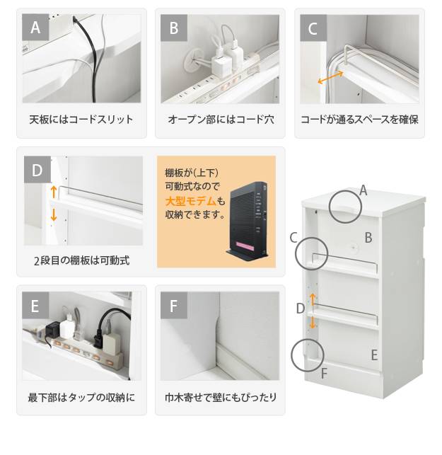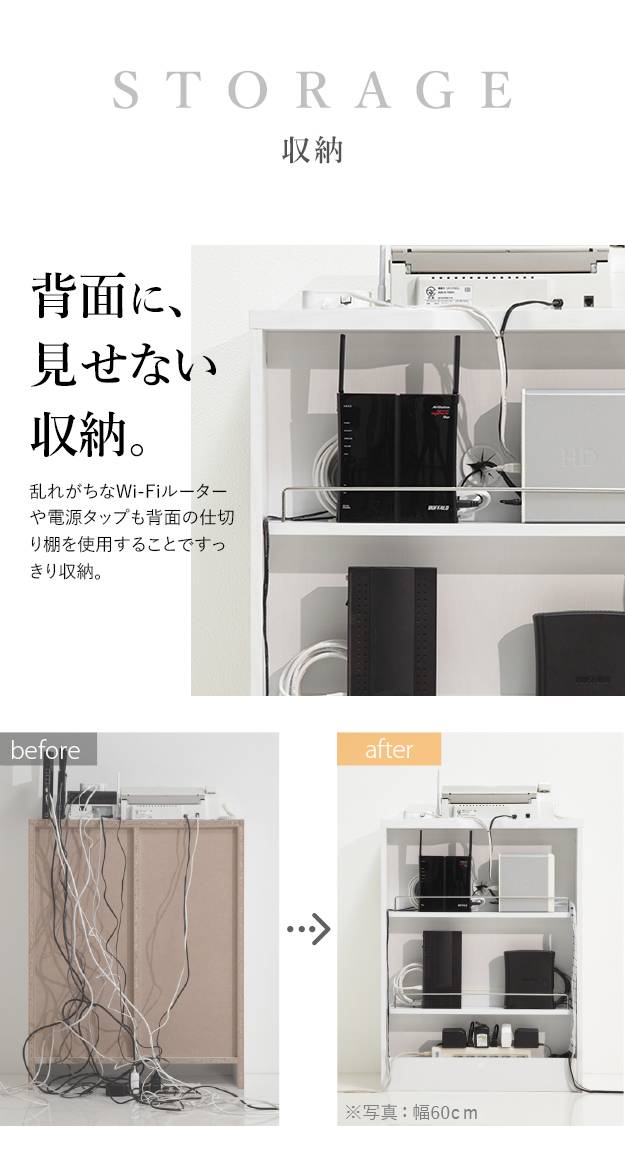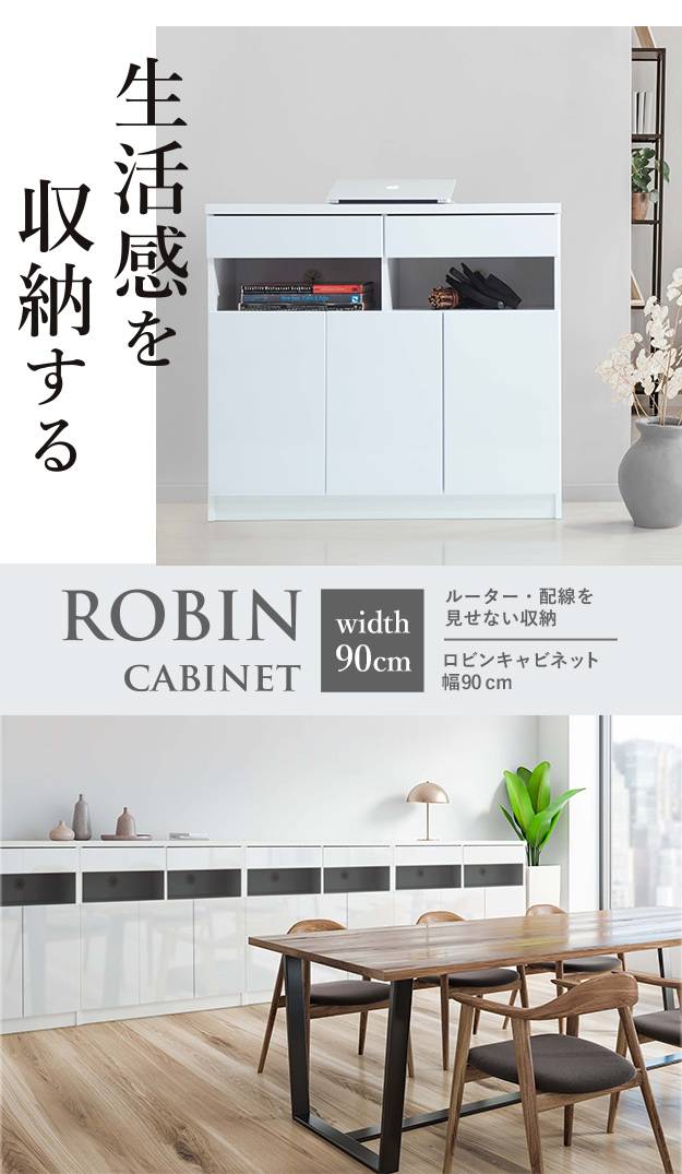 ファックス台 電話台 キャビネット プリンター台 配線収納付きリビングキャビネット ロビンキャビネット 幅90cm ホワイト 白 木製