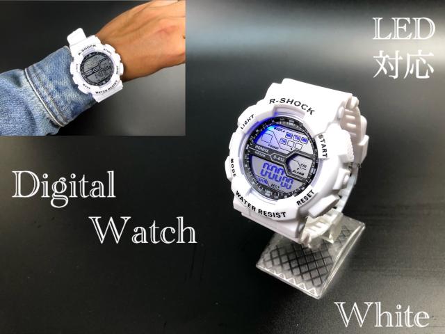 4 スポーツ腕時計 LED デジタル 腕時計 時計 ミリタリー 耐久性 スポーツ アウトドア キャンプ 男女兼用 ランニング アクリルケース ホワイト