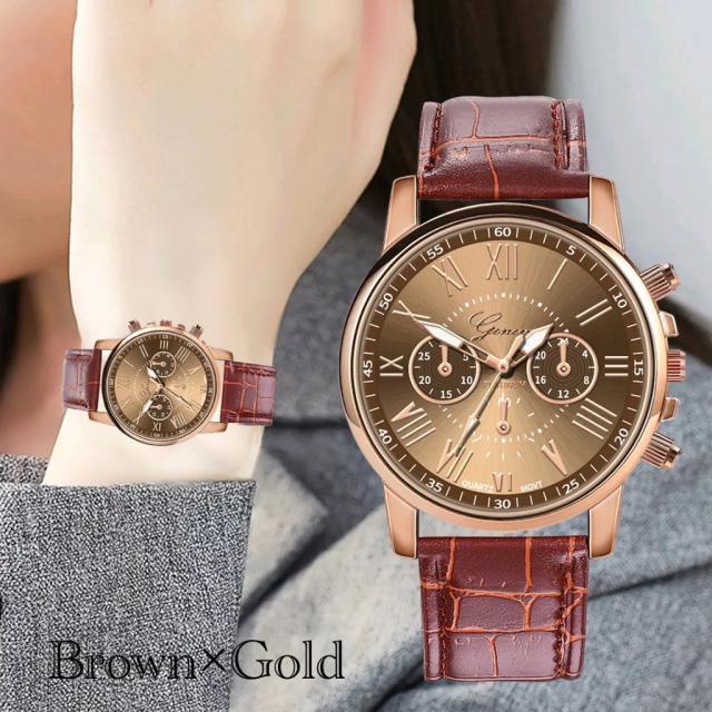 4 腕時計 時計 ギリシャ文字 メンズ腕時計 アナログ メンズ クォーツ 高品質 レザー ベルト バンド 革 ファッション時計 ウォッチ ブラウン ゴールド