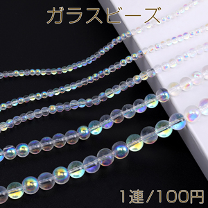メッキガラスビーズ 丸玉 クリアオーロラカラー
