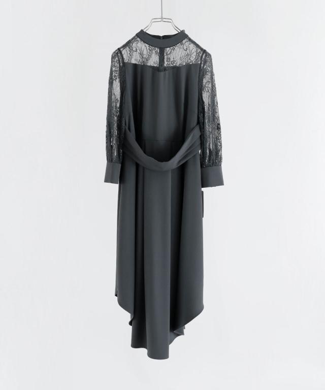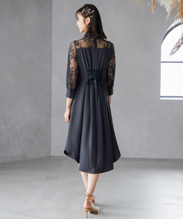 個性的ながらも女性らしいイレヘムスカートのパーティードレス。
