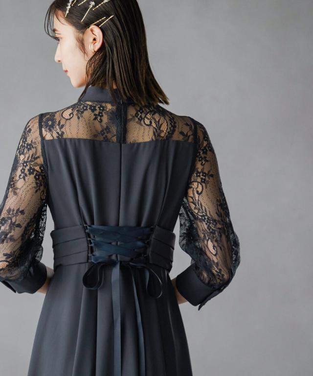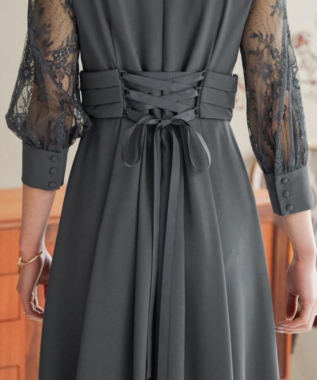 ウエストは後ろでサイズ調整のできるリボンの編み上げ仕様になっています。