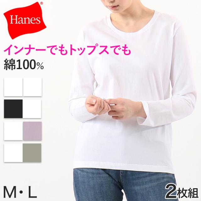 【レディース】/【肌着・ニットインナー】/【長袖】/【M】/【L】/【Hanes[ヘインズ]】/【ホワイト系】/【ブラック系】/【綿100%】/【通年】