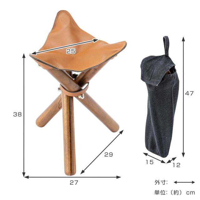 アウトドアチェア フォールディングスツール ( スツール イス 椅子 チェア 折りたたみ 収納袋付き コンパクト 本革 天然木 アウトドアスツール アウトドアチェア 持ち運び アウトドア キャンプ )