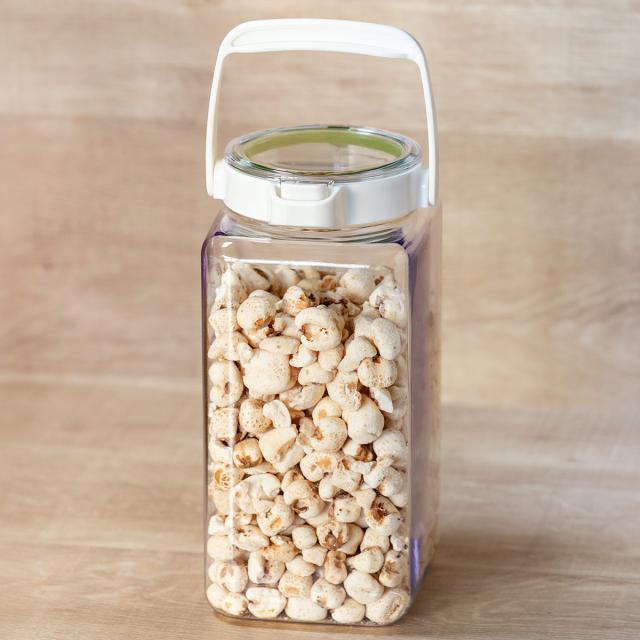 | 軽くて丈夫なプラスチック製 表面に傷が付きにくく劣化や衝撃にも強いプラスチック製なので、誰でも使いやすい保存容器です。 | 容量(2.4L) お米やパスタ、シリアルなどの保存用にしたり、昆布や麦茶のティーバックなどを入れておくだけで、キッチンのアクセントになります。 |