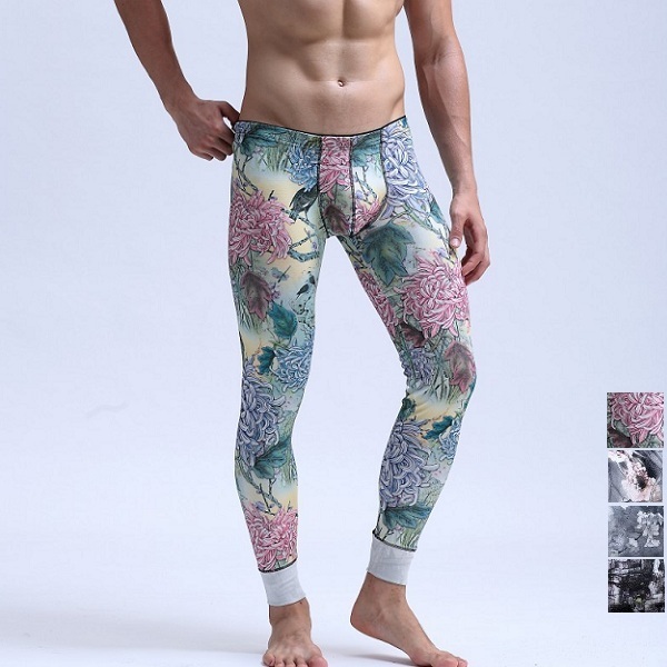 タイツ 花柄 厚手保温 ストレッチ 暖か肌着 メンズ レギンス ロングスパッツ スウェットパンツ z012qk