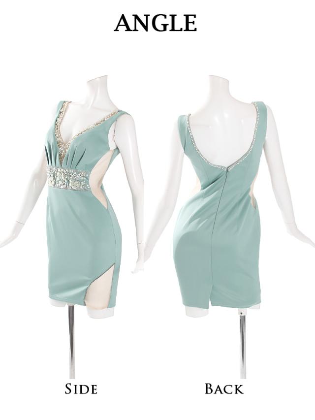 ミニドレス AngelR エンジェルアール AngelR ビジュー シースルー 肌見せ Sライン ワンカラードレス キャバ ド