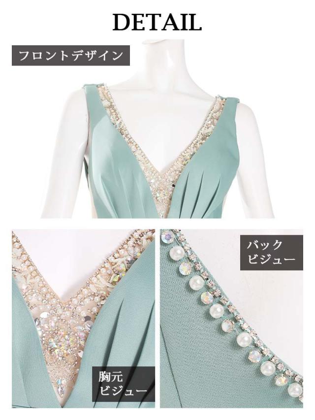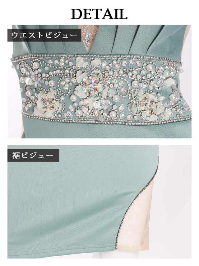 ☆胸元Vラインとウエストに敷き詰め垂れた煌めくビジューが豪華なミニドレスはセクシーな美谷間魅せができる高級キャバドレス♪