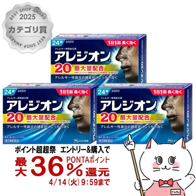 【超超祭 最大36%還元】【第2類医薬品】[セット]アレジオン20 24錠×3個(セルフメディケーション税制対象)鼻炎・アレルギー [メール便発送OK](6043001-set2)