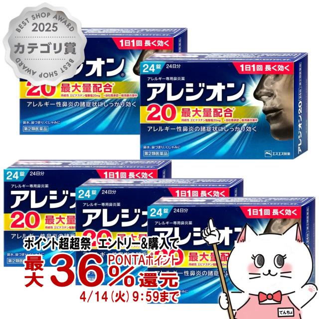 【超超祭 最大36%還元】【第2類医薬品】[セット]アレジオン20 24錠×5個(セルフメディケーション税制対象)鼻炎・アレルギー [送料無料](6043001-set3)