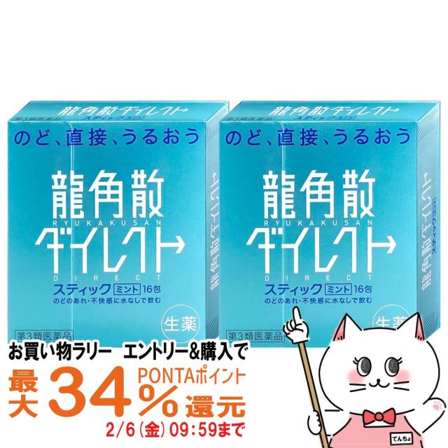 【お買い物ラリー 最大34%還元】【第3類医薬品】[セット]龍角散ダイレクトミント 16包×2個[のど・せき止め][龍角散][メール便発送OK](6038962-set1)