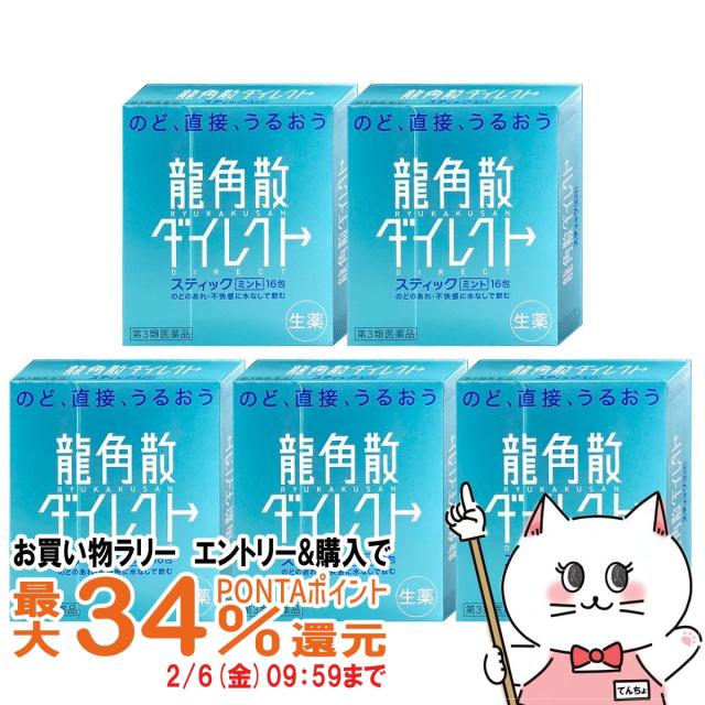【お買い物ラリー 最大34%還元】【第3類医薬品】[セット]龍角散ダイレクトミント 16包×5個[のど・せき止め][龍角散][送料無料](6038962-set2)