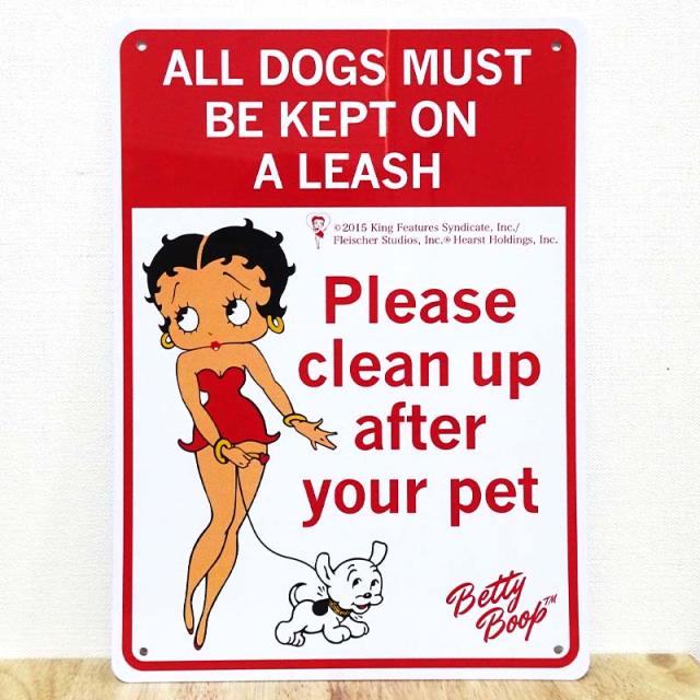 サインボード 看板 可愛い Betty Plastic Sign Board Please Clean Up After Your Pet ベティ・ブープ プレート Betty Boop ガレージ レッド