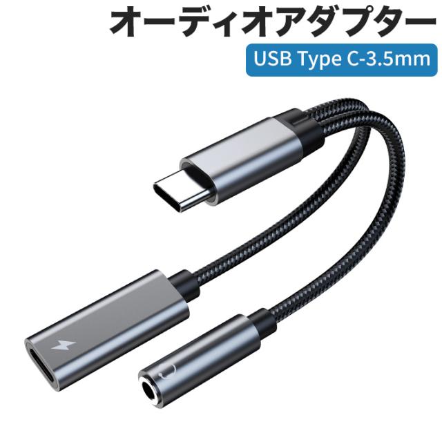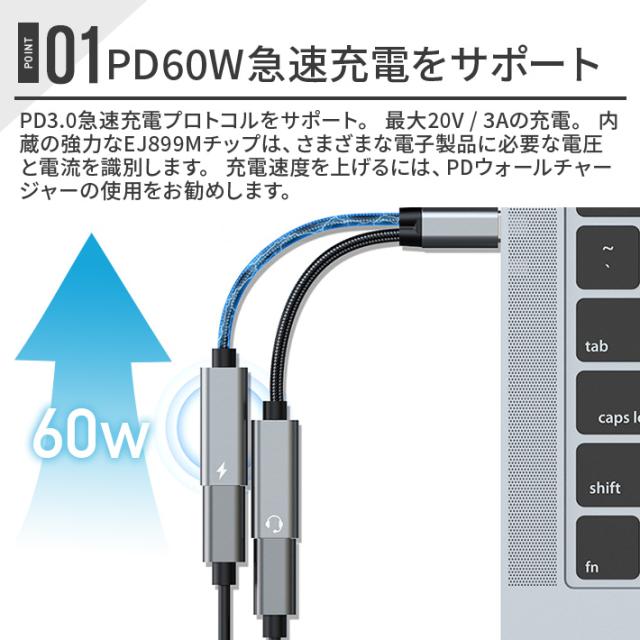 USB Type C-3.5mmオーディオアダプターおよび充電器 60W 2-in-1 USB C PD 3.0充電ポートから補助オーディオジャック