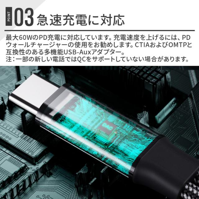 【PD60W急速充電をサポート】 PD3.0急速充電プロトコルをサポートします。 最大20V / 3Aの充電。 内蔵の強力なEJ899Mチップは、さまざまな電子製品に必要な電圧と電流を識別します。 充電電圧と充電電流の安定性を確保して、デバイスを保護します。 充電速度を上げるには、PDウォールチャージャーの使用をお勧めします。 【2in1 USB C〜3.5mmアダプター】USB C〜3.5mmオーディオ充電アダプターを使用すると、充電しながら音楽を聴くことができます。この多機能USBタイプC〜3.5mmアダプターは、音楽の再生と通話をサポートします。ほとんどのUSBCデバイス、およびデバイスの急速充電中のボリューム制御をサポートします。注:データ転送はサポートしていません。