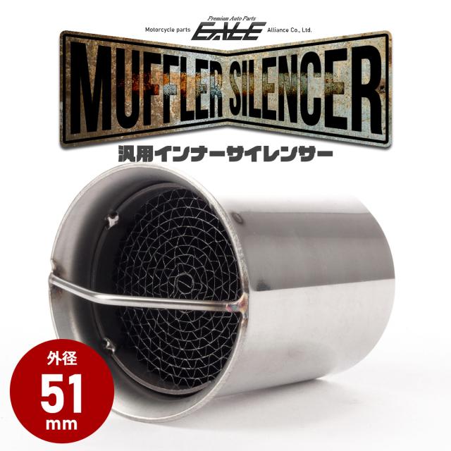バイク 汎用 外径51mm ショート 触媒型 マフラー インナーサイレンサー バッフル 消音器 ステンレス 排気音抑制 S-1012