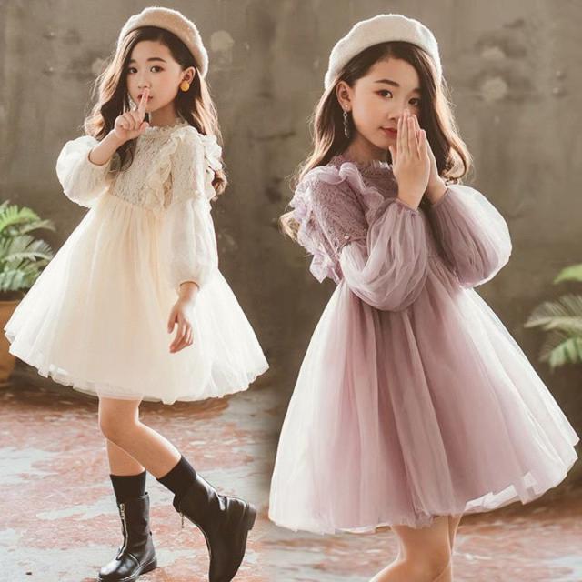 ドレス ワンピース 子供 長袖 お姫 ワンピース ロング丈 ワンピース 子供用 パフスリーブ プリンセス チュールスカート 結婚式 入学式 卒業式 通学 春秋新作