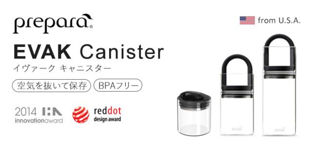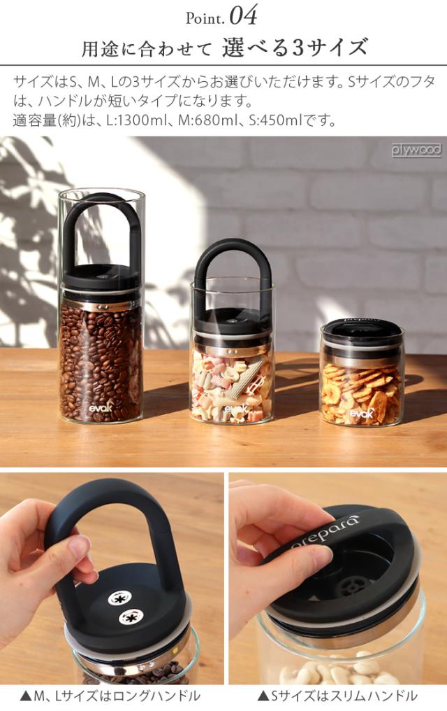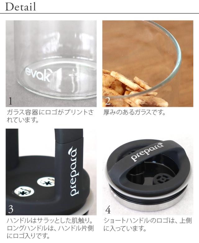キャニスター ガラス 保存容器 フタ付き イヴァーク S スリムハンドル Prepara EVAK Canister 450ml 密閉 ギフト 食品保存 貯蔵 保管 収納 コーヒー豆 紅茶 ドライフルーツ グラノーラ パスタ ハーブ◇ストック キッチン 整理整頓【12時迄のご注文は当日発送】