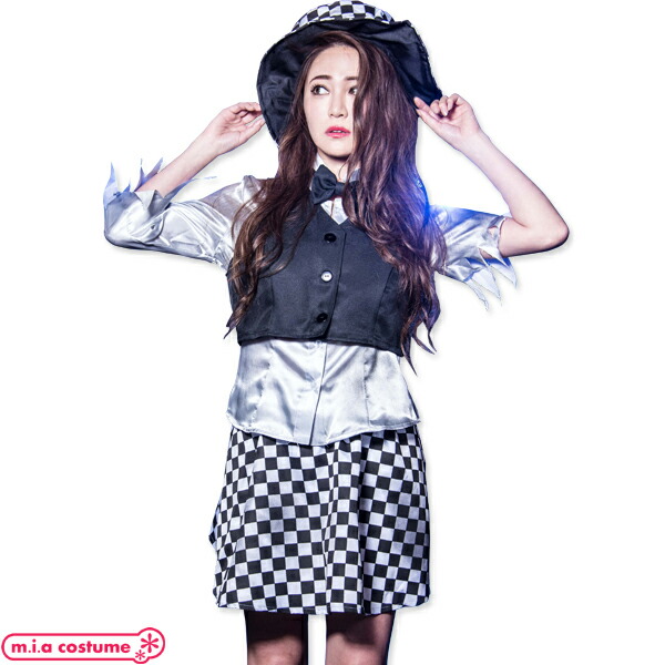 黒 ブラック 白 ホワイト ブロック柄 無地 チェック柄 市松模様 BODYLINE ボディライン 不思議の国のアリス 帽子屋 ゾンビ風 ホラー映画 レディース 婦人 女性サイズ コスプレ コスチューム 仮装 衣装 Cosplay Costume ハロウィン Halloween イベント 文化祭 新年会 忘年会 撮影会 余興 催事 セクシー Sexy 清楚系 おとなしめ 可愛い かわいい キュート Cute フェミニン プチプラ プレゼント用 ギフト 人気 高品質 誕生日 彼女 彼氏 送料無料 ミアコスチューム ポイント消化