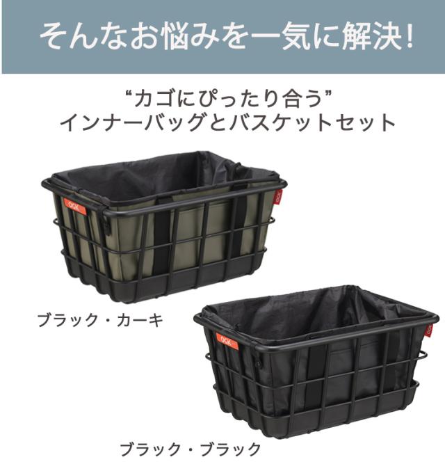 OGK 自転車 後ろカゴ インナーバッグ付き RB-020+TN-017R うしろ用バスケット リア エコバッグ ブラック カーキ
