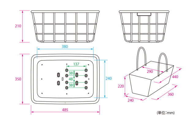 ■目安サイズ(外寸)/幅350x高さ210x奥行485mm |