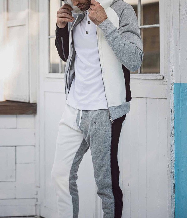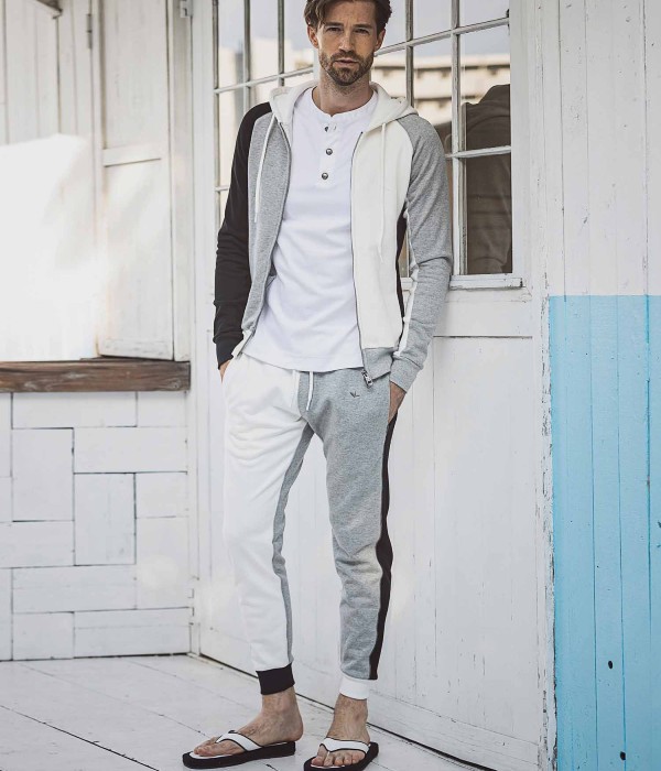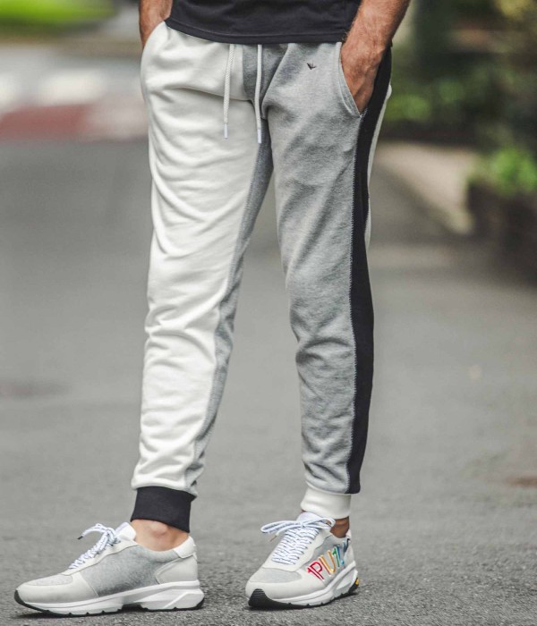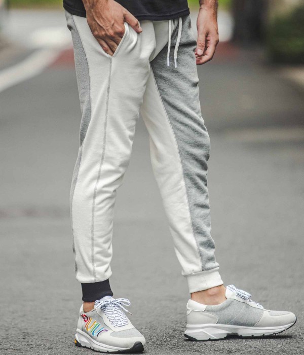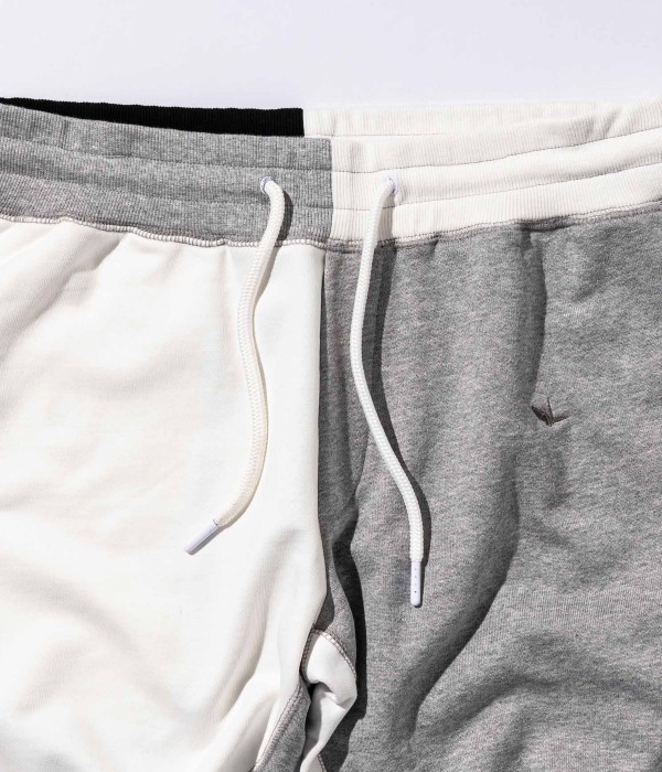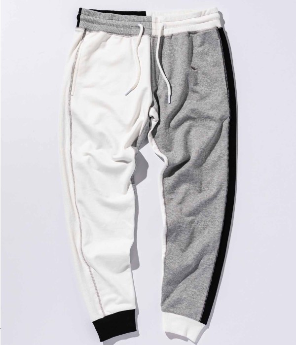 マルチカラーで仕立てたクレイジーパターンが目を惹くジョガーパンツ。一見奇抜に見えるクレイジーパターンも、シックなモノトーンでまとめることにより他のアイテムとも馴染みよく仕上がりました。