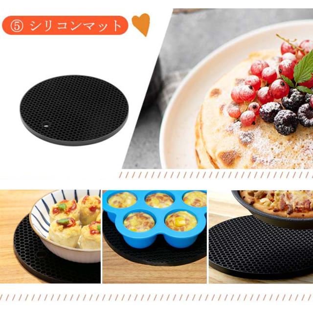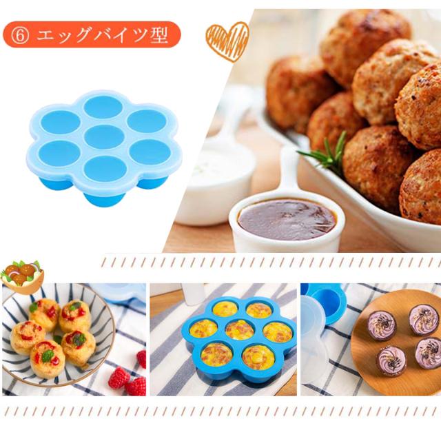 ケーキ型*1、ピザ型*1、串ラックと串*1、メタルホルダー*1、エッグバイツ型*1、シリコンマット*1