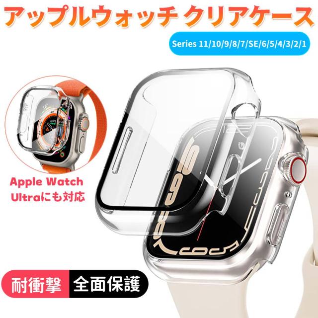 アップルウォッチ ケース 保護 カバー クリア 49mm 46mm 45mm 44mm 42mm 41mm 40mm 38mm 保護ケース 透明 クリア ブルーライトカット Apple Watch Ultra 11 10 9 8 7 SE 6 5 4 3 2 1 対応 耐衝撃 全面保護 装着簡単 超薄型 互換品