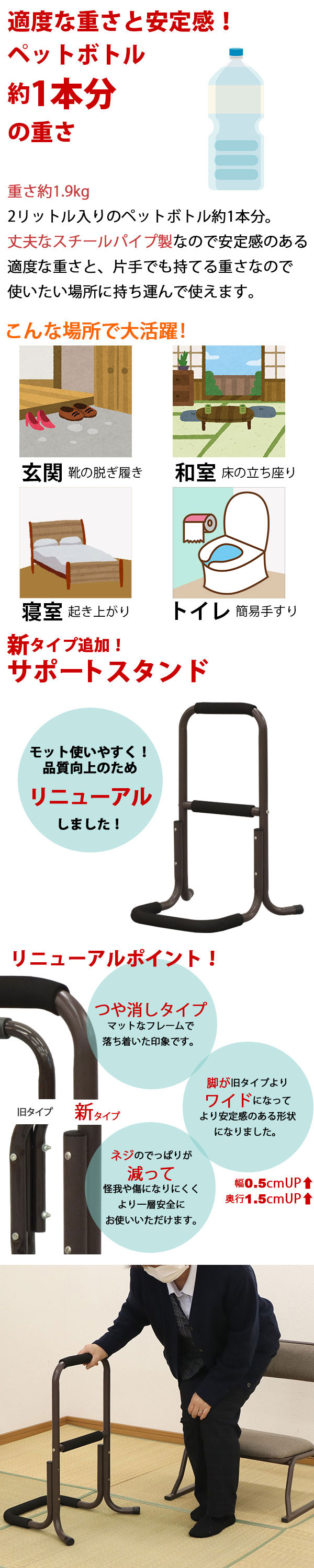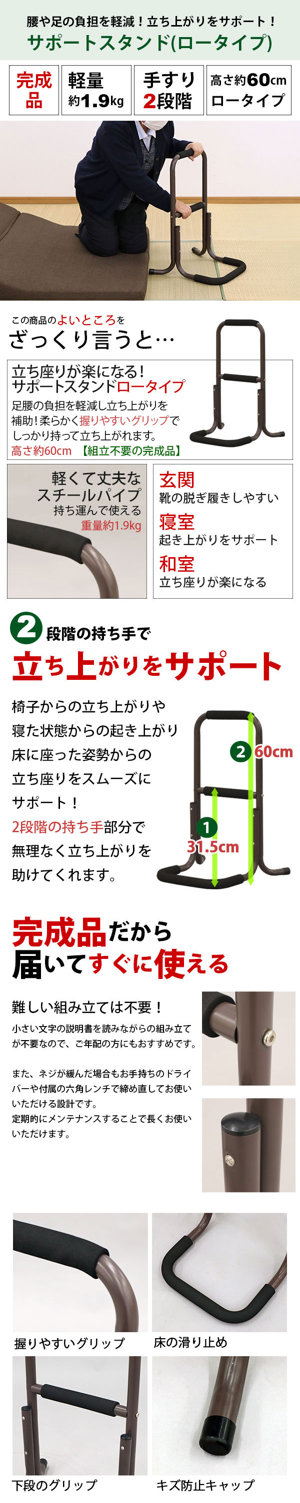 腰や足の負担を軽減!立ち上がりをサポート! サポートスタンド(ロータイプ) の説明